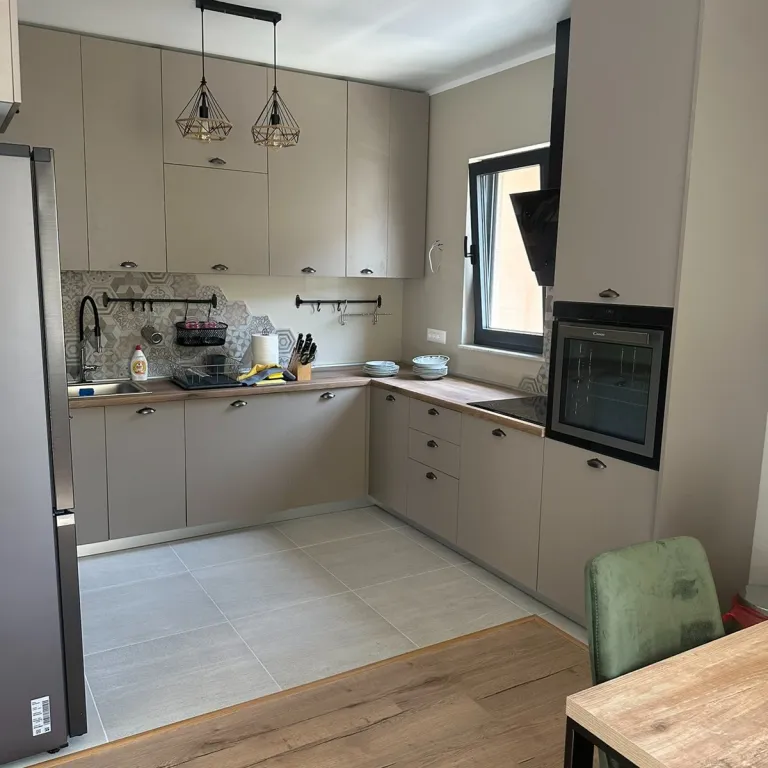 Kompletno je renovirana 2023 godine i sastoji se od dva manja dvorista, garaze, dnevnog boravka sa kuhinjom i trpezarijom, cetiri spavace sobe, dva kupatila i terase. Postoji mogucnost nadogradnje kuce.
