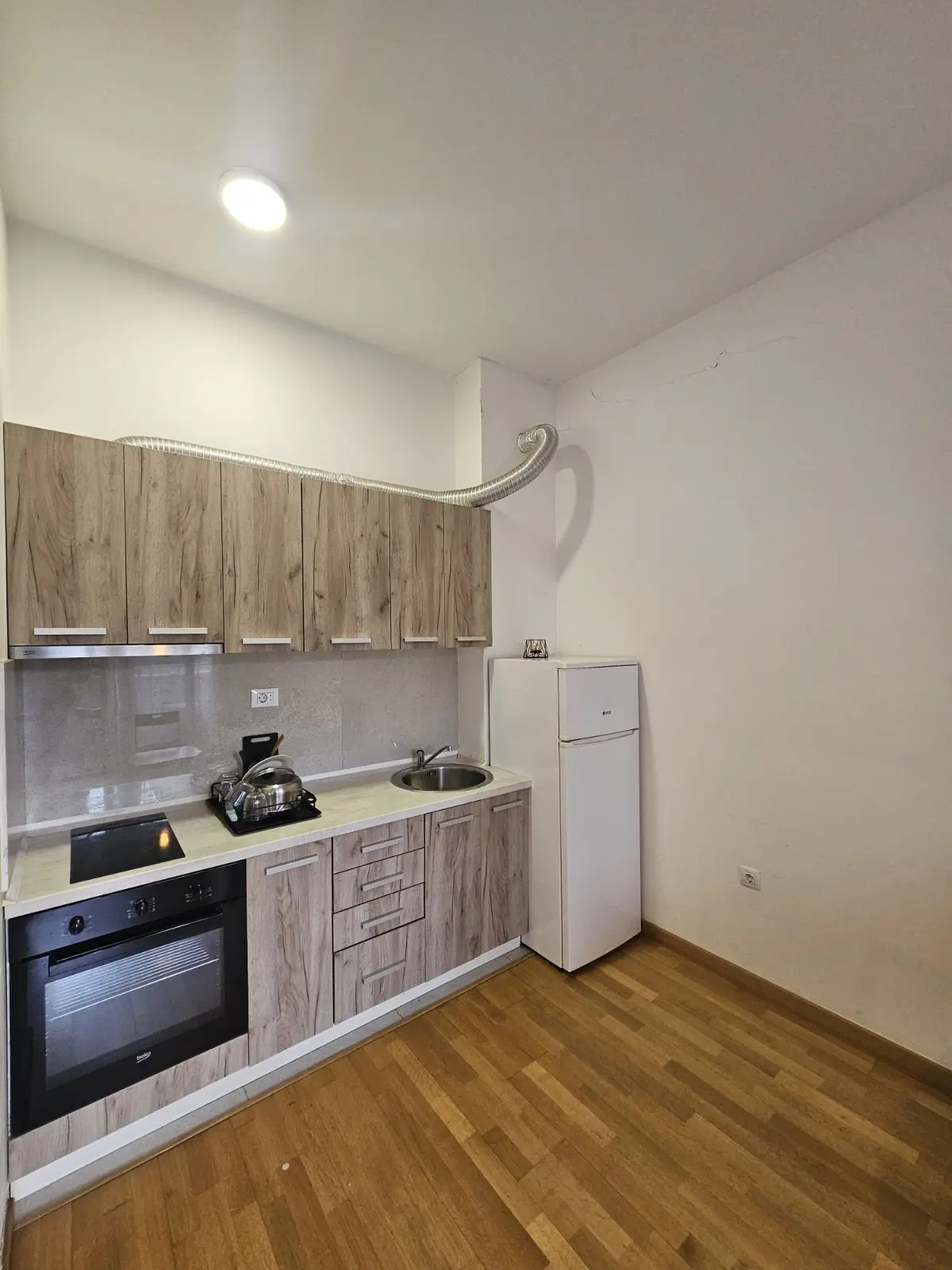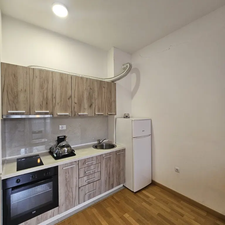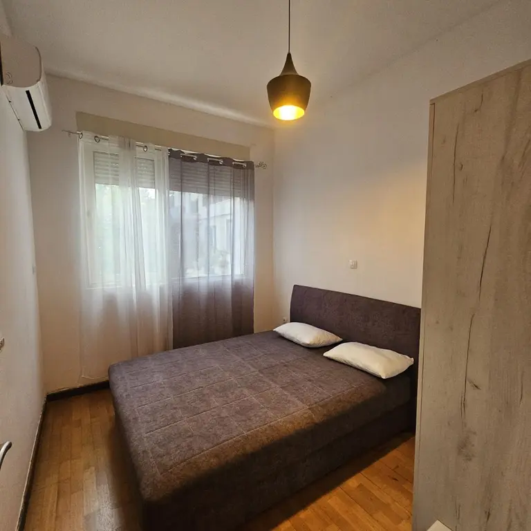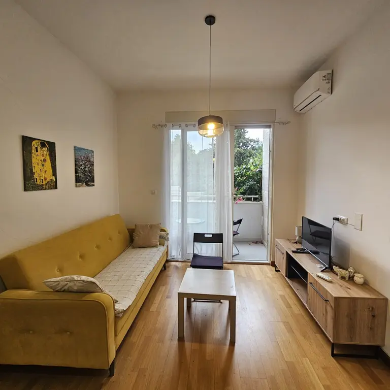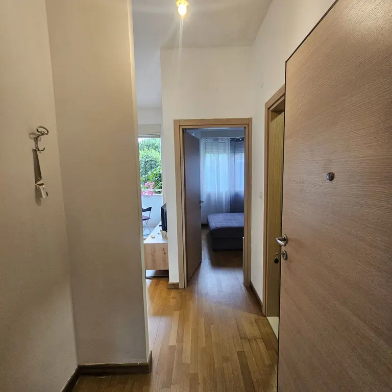 U blizini Slovenske plaze, prodaje se jednosoban opremljen stan. Nalazi se na prizemlju stambene zgrade novije gradnje i zauzima povrsinu od 33m2. Cine ga hodnik, dnevni boravak sakuhinjom i trpezarijom, spavace sobe,kupatila i terase. Dokumentacija stana je uredna i prodaje se u vidjenom stanju.